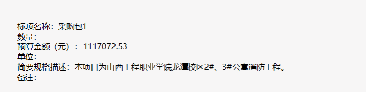 山西工程職業(yè)學(xué)院競(jìng)爭(zhēng)性磋商龍?zhí)缎^(qū)2#、3#公寓樓消防改造工程