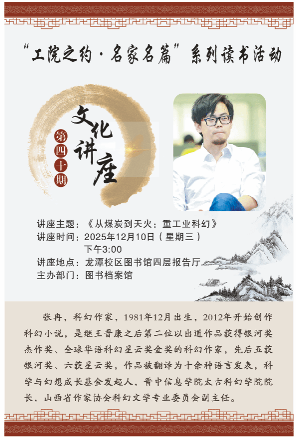 “工院之約·名家名篇”系列讀書活動第四十期文化講座:從煤炭到天火:重工業科幻