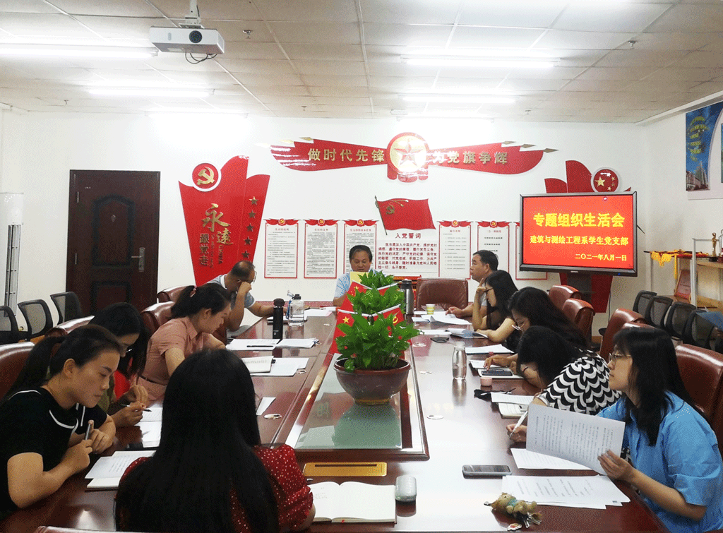為有效推進(jìn)黨史學(xué)習(xí)教育深入開展,切實(shí)提高學(xué)習(xí)教育的針對(duì)性和實(shí)用性,確保黨史學(xué)習(xí)教育取得真正實(shí)效,根據(jù)學(xué)院關(guān)于印發(fā)《基層黨支部召開黨史學(xué)習(xí)教育專題組織生活會(huì)的實(shí)施方案》(工職院黨[2021]34號(hào))的文件要求,8月1日上午,建筑與測繪工程系教師黨支部、學(xué)生黨支部分別在圖書館501、系黨建工作活動(dòng)室召開黨史學(xué)習(xí)教育專題組織生活會(huì),認(rèn)真檢視支部與黨員在學(xué)習(xí)教育中存在的問題,通過批評(píng)與自我批評(píng)及交流學(xué)習(xí)促進(jìn)支部凝聚力、戰(zhàn)斗力與黨員黨性修養(yǎng)的提高。