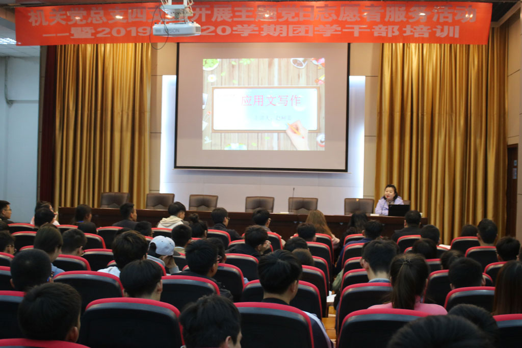 今年是新中國成立70周年,為進一步貫徹落實習(xí)近平新時代中國特色社會主義思想和黨的十九大精神,切實踐行“不忘初心、牢記使命”主題教育為身邊群眾辦實事、辦好事的具體要求。11月6日下午,機關(guān)黨總支四支部對全體團學(xué)干部開展“應(yīng)用文寫作”課程培訓(xùn)服務(wù)活動。