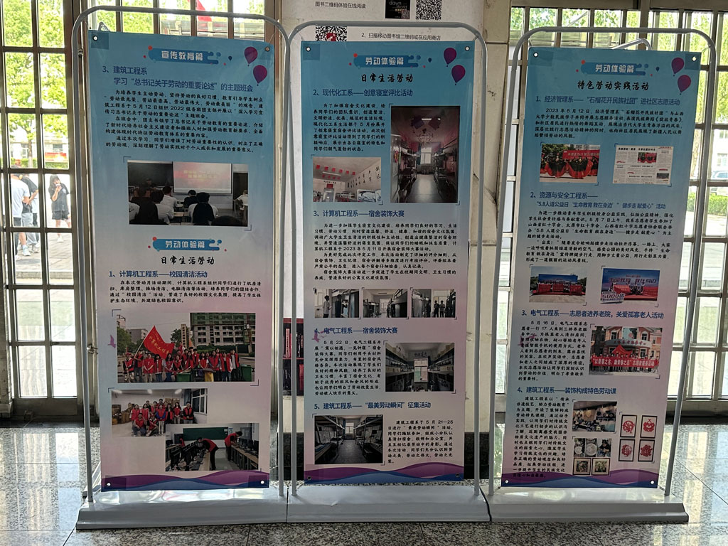 6月9日,素質(zhì)教育部在圖書館前舉辦了“山西工程職業(yè)學院第一屆勞動月活動成果展”。本次成果展分為“宣傳教育篇”和“勞動體驗篇”兩大板塊。“宣傳教育篇”中展示了各系部圍繞勞動月活動開展的各類主題班會活動;“勞動體驗篇”中又分為日常生活勞動、特色勞動實踐活動、服務(wù)性勞動,其中包含清潔校園活動、宿舍裝飾活動、社區(qū)志愿服務(wù)活動、公益志愿活動、敬老愛老活動等各類特色鮮明的勞動實踐活動。