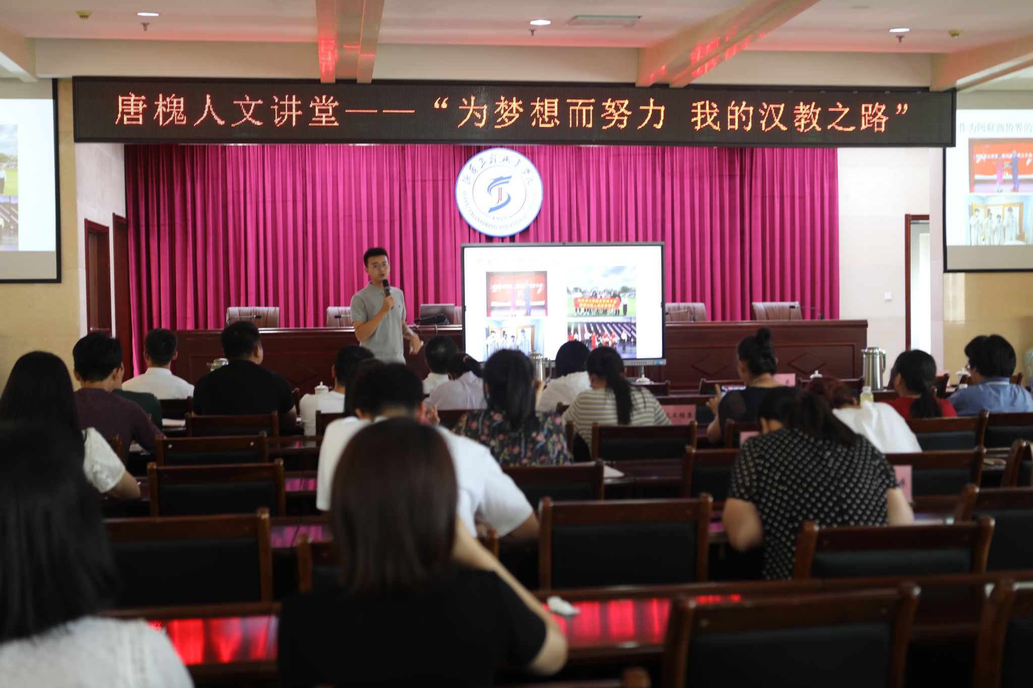 7月14日,我院邀請現(xiàn)任阿聯(lián)酋教育部漢語教師、阿聯(lián)酋山西商會暨同鄉(xiāng)會秘書長金山在龍?zhí)?/span>校區(qū)13層會議室,為學(xué)院師生共計(jì)200余人作題為《為夢想而努力--我的漢教之路》的專題報(bào)告。報(bào)告會由黨委副書記李茂林主持。