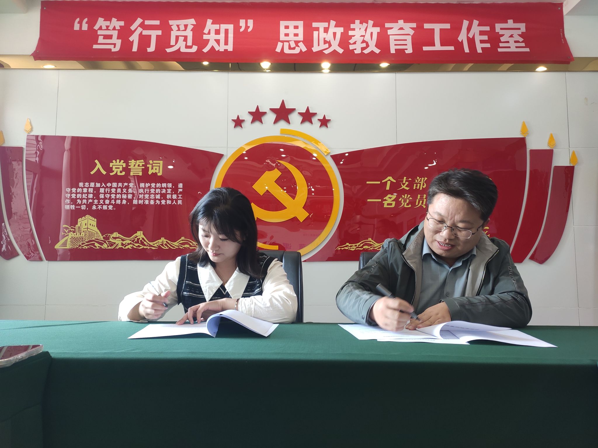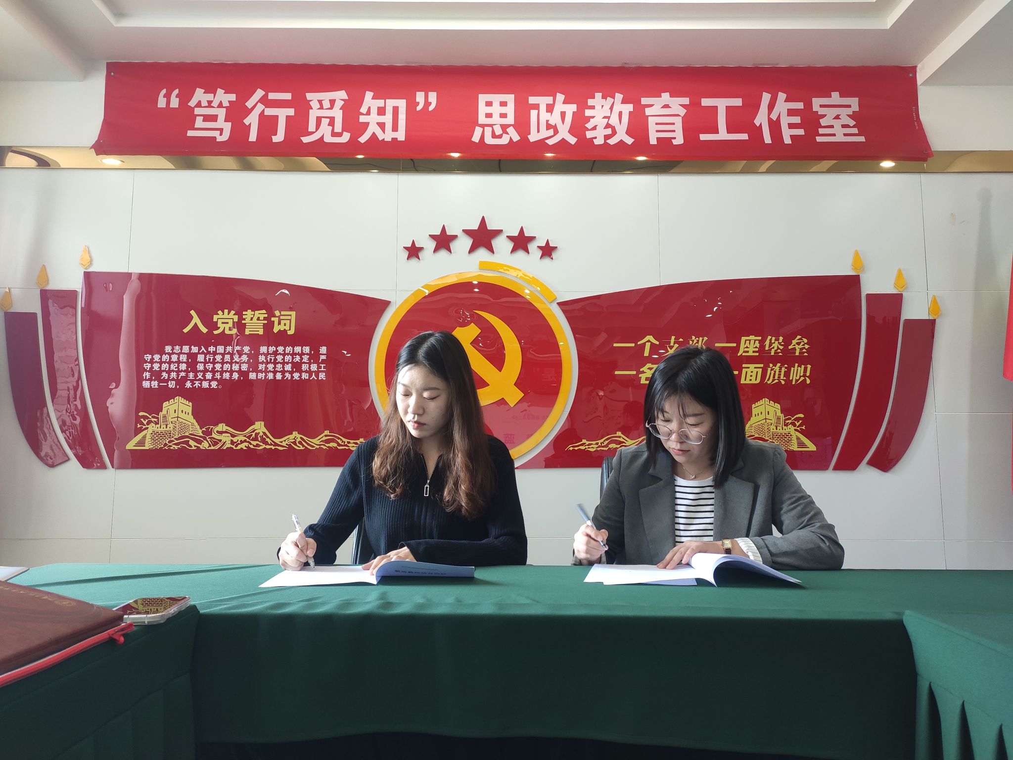 為促進(jìn)新進(jìn)教師迅速成長(zhǎng),提高新進(jìn)教師的教學(xué)科研水平,10月13日下午,思政部以師徒對(duì)結(jié)為形式,以傳、幫、帶為主要手段,與兩名新進(jìn)教師簽訂培養(yǎng)協(xié)議,進(jìn)一步加強(qiáng)對(duì)青年教師的培養(yǎng)與指導(dǎo)。