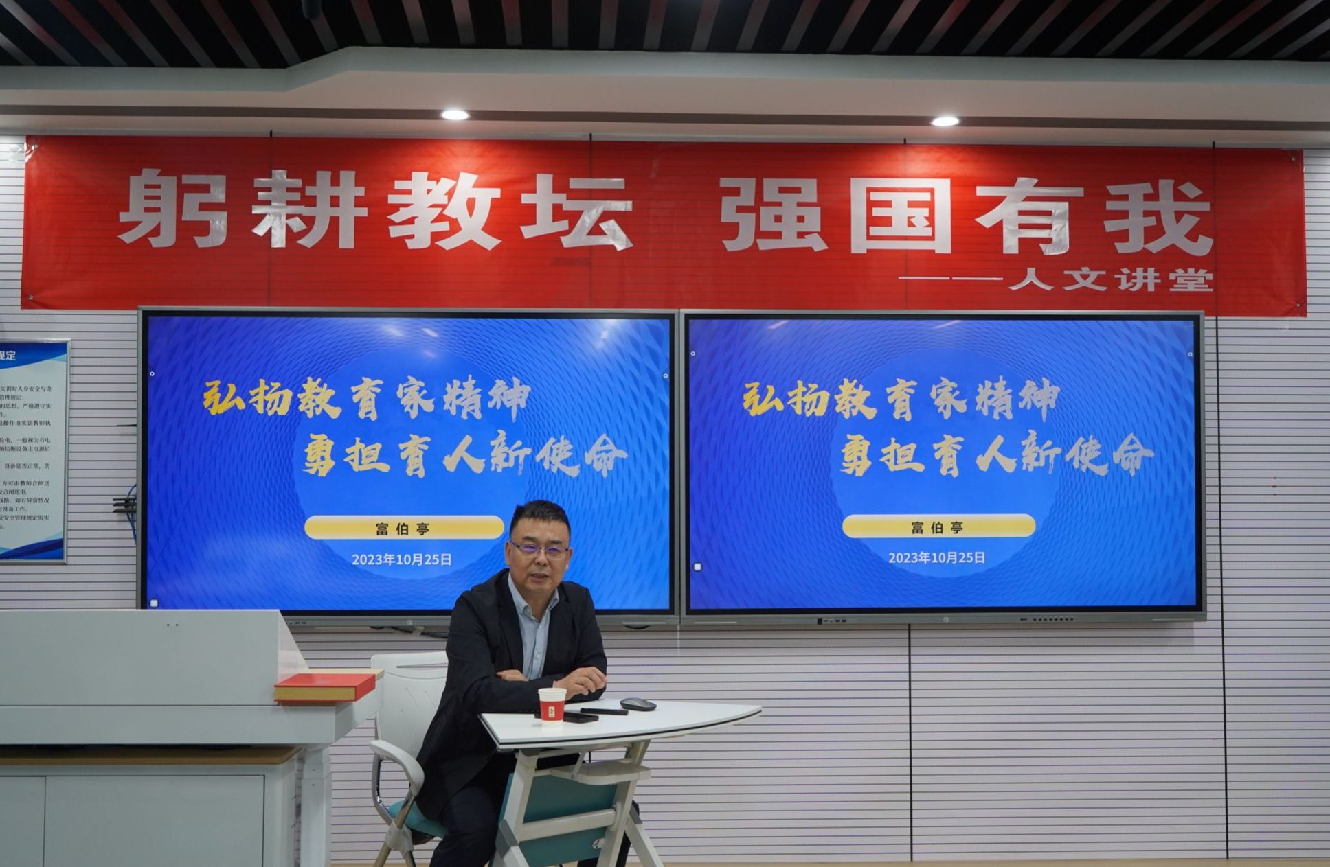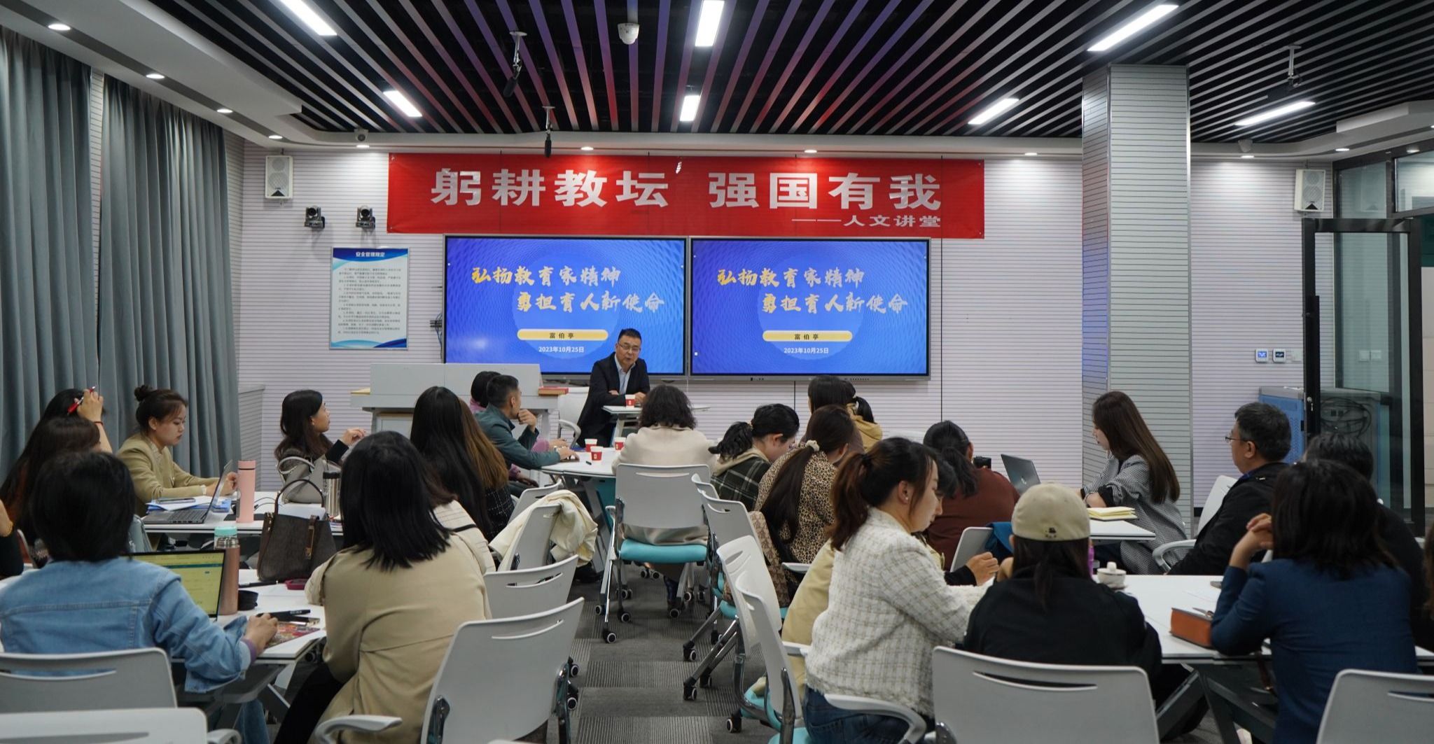 為深入學(xué)習(xí)貫徹習(xí)近平總書記對(duì)職業(yè)教育及全體教師的重要指示精神,扎實(shí)推進(jìn)主題教育走深走實(shí),10月25日下午,宣傳部、基礎(chǔ)教學(xué)部、教務(wù)部、思政部聯(lián)合舉辦主題教育講座,邀請(qǐng)山西金融職業(yè)學(xué)院副院長(zhǎng)富伯亭教授為四部門全體教師作題為《弘揚(yáng)教育家精神 勇?lián)诵率姑返闹黝}教育講座。學(xué)院副院長(zhǎng)郝糾糾出席并講話。基礎(chǔ)教學(xué)部、思政部、宣傳部全體教師參加了本次講座。