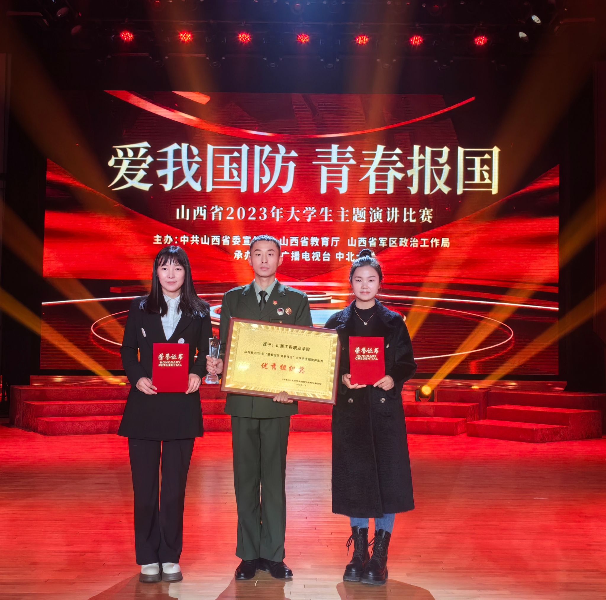 踔厲奮發(fā)強國防,勇毅前行向復(fù)興。11月21日,由省委宣傳部、省教育廳、省軍區(qū)政治工作聯(lián)合局主辦的山西省2023年“愛我國防,青春報國”大學(xué)生主題演講大賽決賽在中北大學(xué)成功舉辦,我院參賽選手施紀樺演講的《風(fēng)云激蕩百余年,軍魂一鑄天地寬》取得了全省二等獎的優(yōu)異成績。