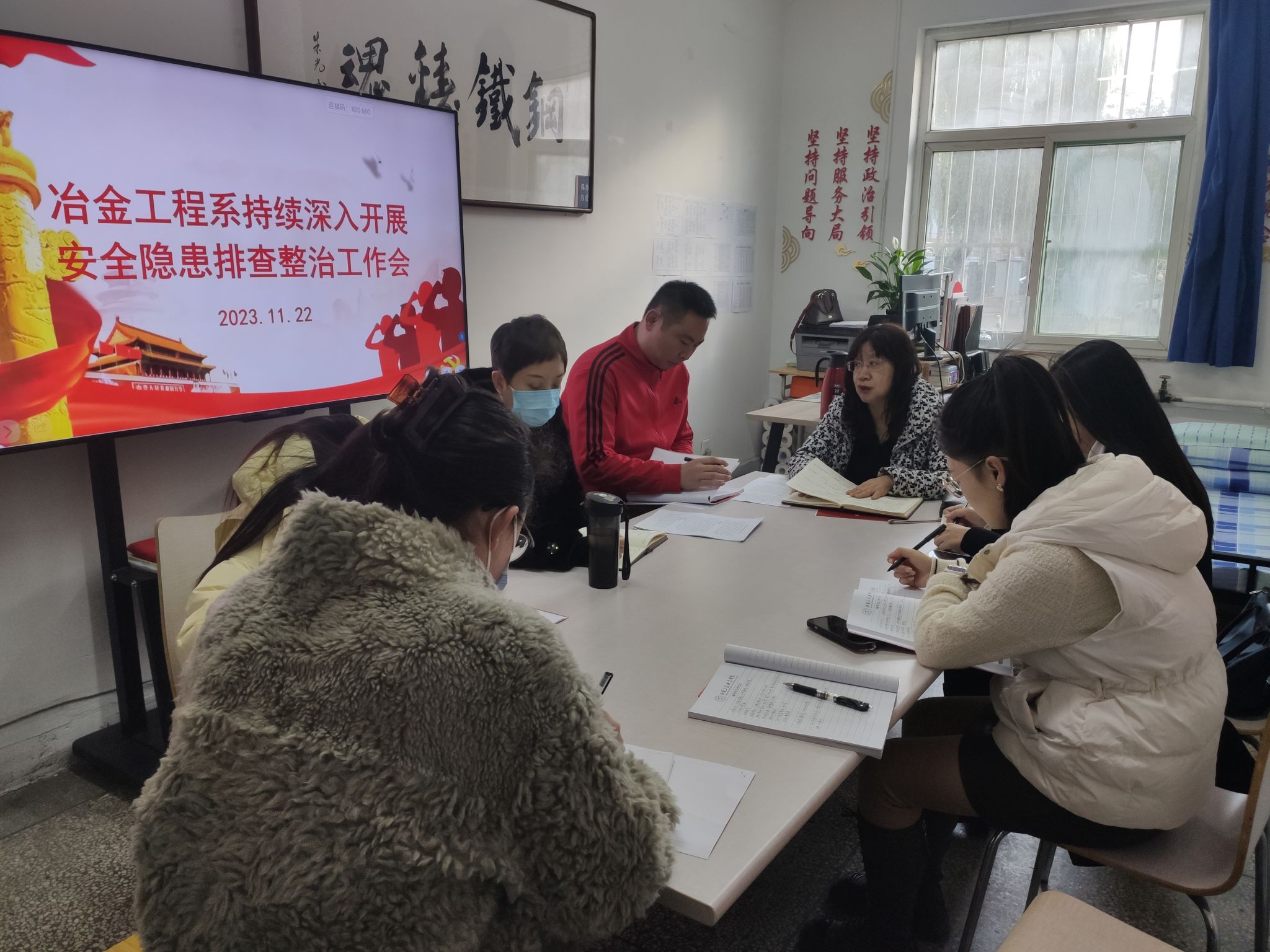 為傳達學(xué)院安全工作會議相關(guān)精神,提升系部學(xué)生安全意識,為同學(xué)們營造一個和諧安全的學(xué)習(xí)生活環(huán)境,冶金工程系于11月22日召開持續(xù)深入開展安全隱患排查整治工作會議,本次會議由系黨總支書記李秀珍主持,黨總支副書記李穎、團總支書記梁一然及全體班主任參加。