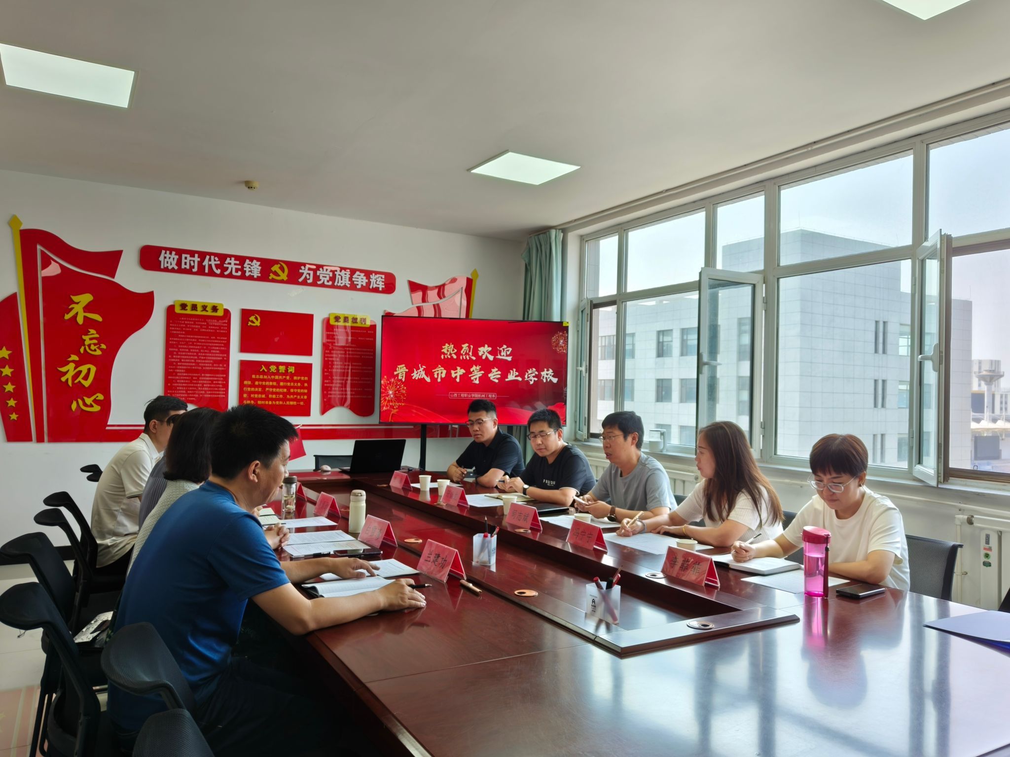 白雪清代表學(xué)院、系部致歡迎辭,對晉城市中等專業(yè)學(xué)校的到來表示熱烈歡迎。她介紹了我院的歷史沿革、發(fā)展道路、高水平學(xué)校建設(shè)和教育教學(xué)管理等基本情況。司志斌也介紹了本校的基本情況及礦山機(jī)電專業(yè)的發(fā)展。接著,兩方主要就機(jī)電技術(shù)及應(yīng)用專業(yè)、礦山機(jī)電專業(yè)的課程設(shè)置與教學(xué)、專業(yè)實訓(xùn)設(shè)備配置、技能競賽訓(xùn)練開展、技能等級鑒定和升學(xué)就業(yè)等相關(guān)專業(yè)建設(shè)事宜進(jìn)行了深入交流和研討,雙方相互交流,共同學(xué)習(xí),氣氛融洽熱烈。