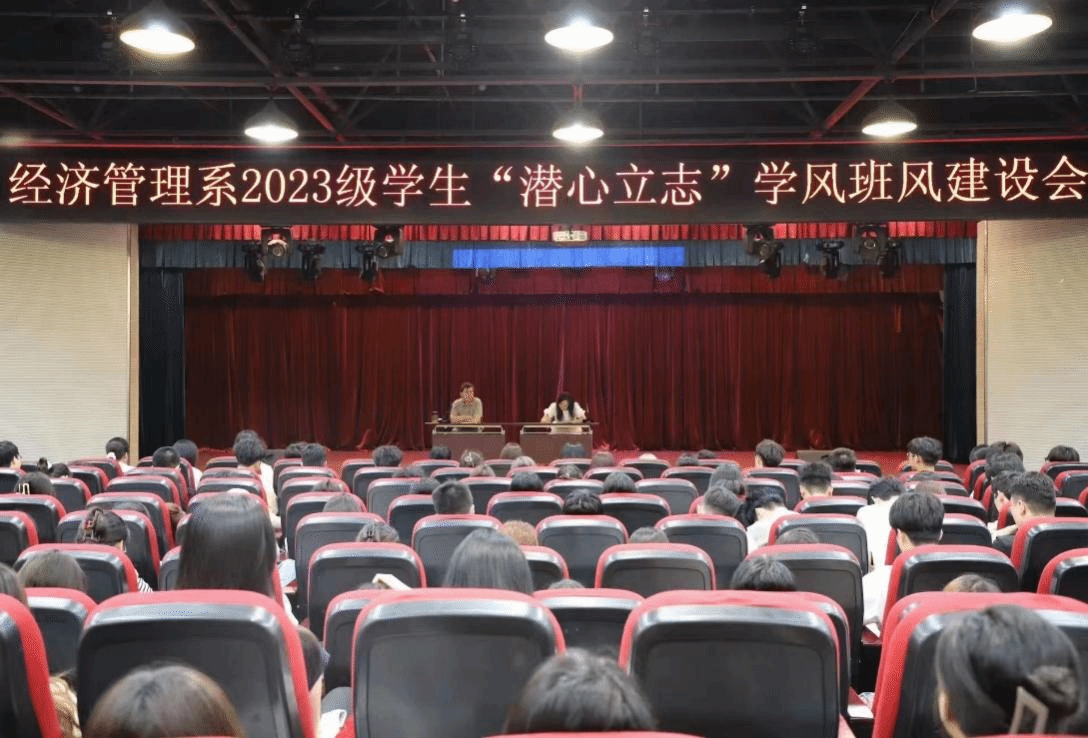 為持續(xù)推進(jìn)優(yōu)良學(xué)風(fēng)建設(shè),引導(dǎo)學(xué)生樹立正確學(xué)習(xí)觀念,養(yǎng)成良好學(xué)習(xí)習(xí)慣,端正學(xué)習(xí)態(tài)度,增強(qiáng)學(xué)習(xí)動(dòng)力,全面營(yíng)造健康向上、奮發(fā)有為、力爭(zhēng)上游的學(xué)習(xí)氛圍,9月13日,經(jīng)濟(jì)管理系在圖書館八層報(bào)告廳召開2023級(jí)學(xué)生“潛心立志”學(xué)風(fēng)班風(fēng)建設(shè)會(huì)。系黨總支書記王愛民、副書記焦琪與全體2023級(jí)學(xué)生參加會(huì)議。