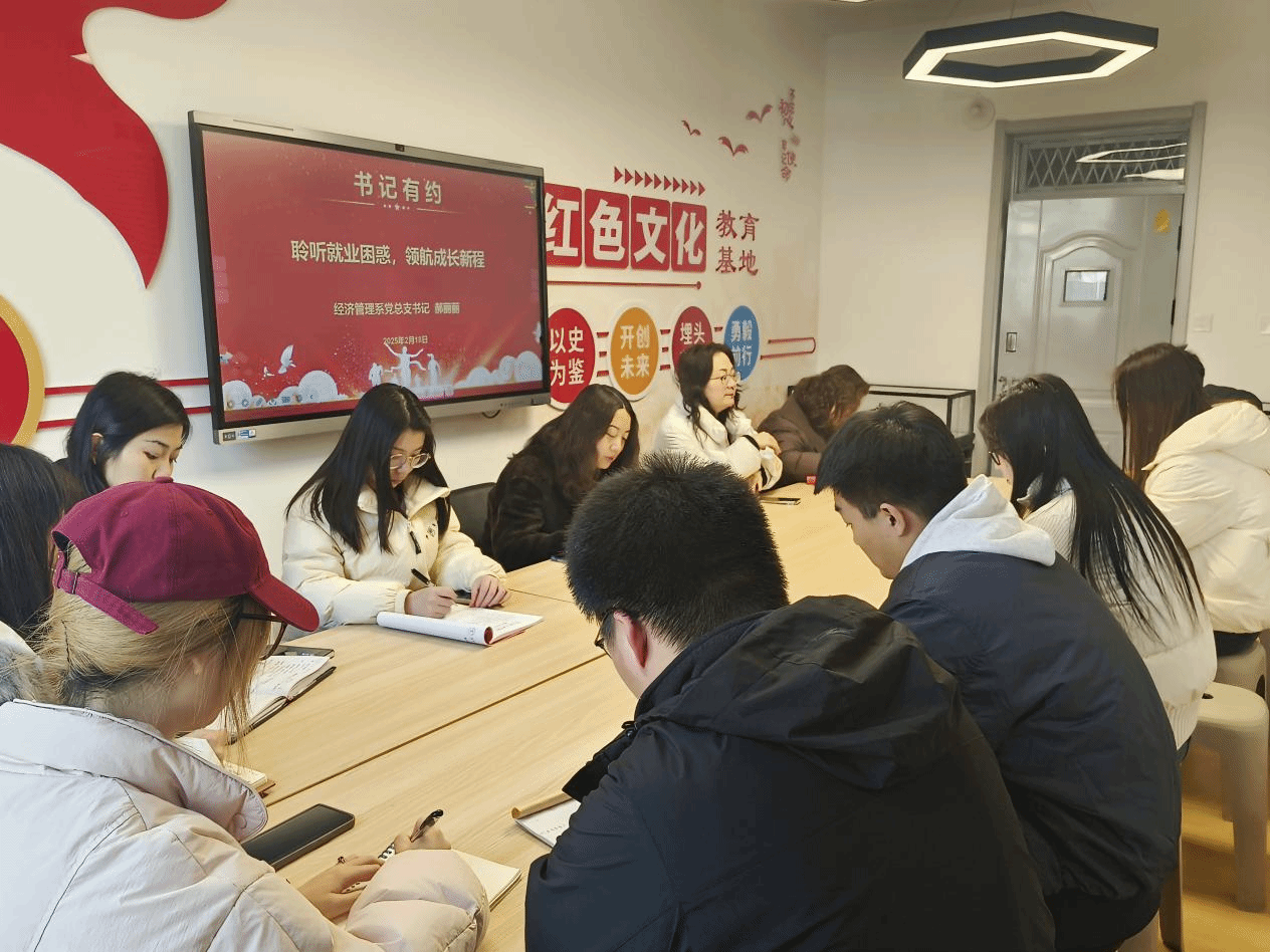 為扎實做好就業(yè)育人有關工作,2月19日下午,經(jīng)濟管理系召開“書記有約”學生就業(yè)座談會。會議由系黨總支副書記焦琪主持,全體專職輔導員和學生代表參加。