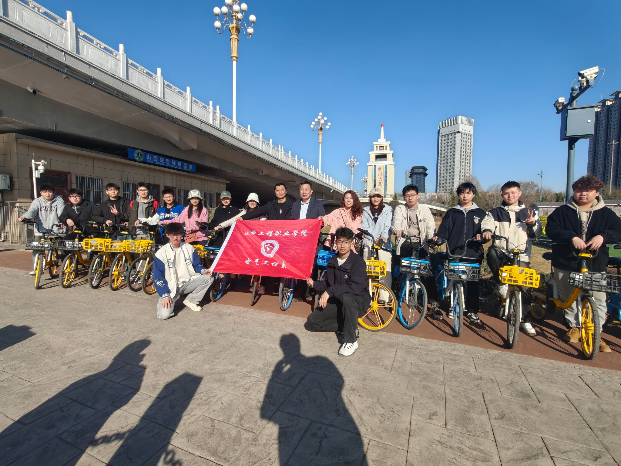 之后,師生們踏上“騎遇春光”之旅,以低碳出行的方式踐行綠色生活理念,用實際行動詮釋對生態(tài)環(huán)境的守護。騎行至漪汾橋下,“鋒行萬里” 志愿服務(wù)展開。擦拭器材、清理周邊環(huán)境,以點滴行動傳遞雷鋒精神,彰顯青年擔(dān)當(dāng)。