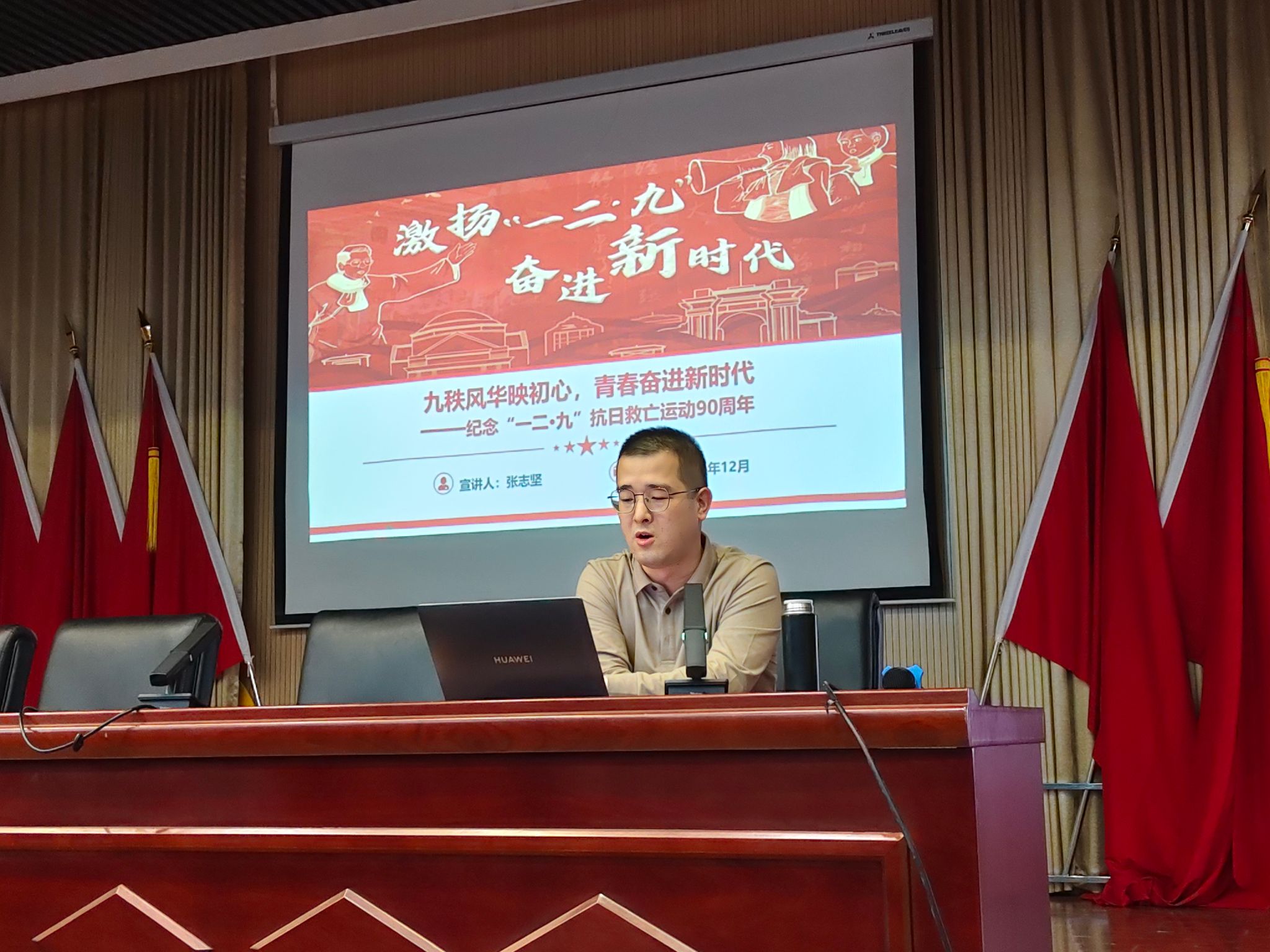 為傳承紅色基因,厚植青年學生愛國情懷,12月9日下午,經濟管理系特邀思政部教師張志堅,開展紀念“一二·九”抗日救亡運動90周年專題講座。經濟管理系全體團員、入黨積極分子、各班級主要學生干部參加本次活動。