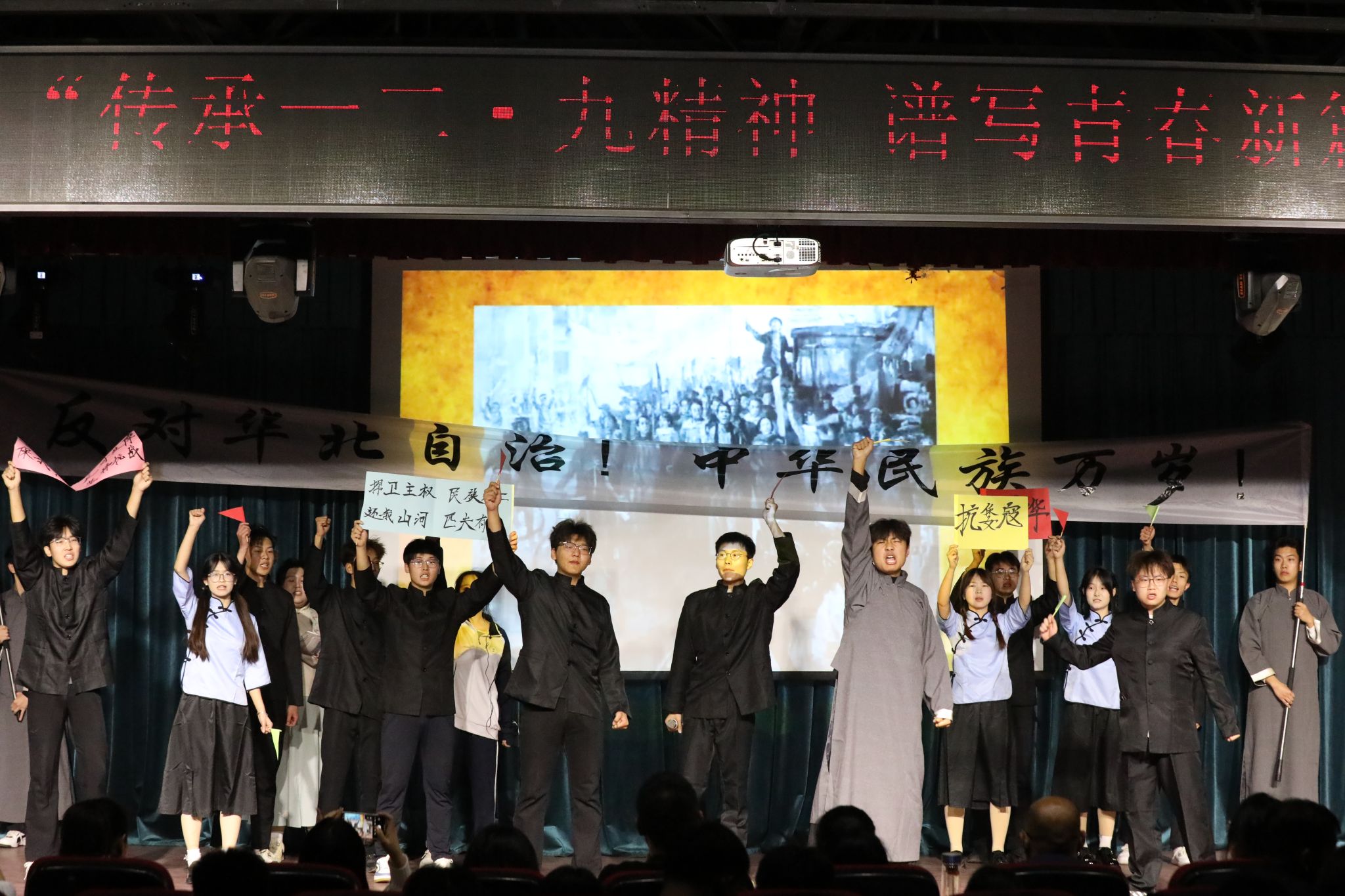 此外,機械工程系《歷史的回響》展現“全民一心,共赴國難”的動人畫面;現代化工系《破曉》創新融入說唱元素,以“銘記731!勿忘國恥!”的誓言呼吁珍愛和平;電氣工程系出演的《熱血青春:跨越時空的12·9吶喊》,借校園陳列館的舊物開啟與先輩的時空聯結;資源與安全工程系《青春中國》回望梁啟超、李大釗等先輩的青春哲思;建筑工程系《跨越時空的青春應答》以紅色圍巾為紐帶,詮釋民國學子與現代建筑青年的“匠心筑家國”;交通工程系《北約1935:赴國難之約》則重回1935年北平寒夜,再現學子“停止內戰,一致抗日”的時代強音。