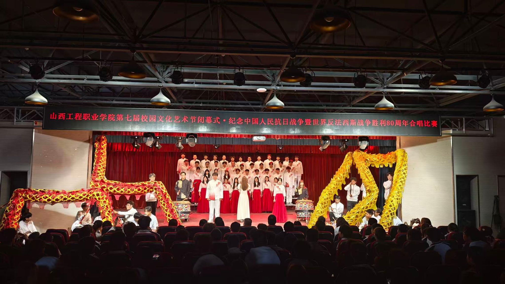 11月12日下午,我院第七屆校園文化藝術(shù)節(jié)閉幕式、紀(jì)念中國人民抗日戰(zhàn)爭暨世界反法西斯戰(zhàn)爭勝利80周年合唱比賽在龍?zhí)缎^(qū)和唐槐校區(qū)同步舉行。師生齊聚一堂,以嘹亮歌聲回望崢嶸歲月,致敬偉大勝利,為校園文化藝術(shù)節(jié)畫上圓滿句號。比賽中,十個系的參賽隊伍精神飽滿、斗志昂揚,用歌聲傳遞對祖國的熱愛與對歷史的敬畏?!段液臀业淖鎳贰渡倌曛袊f》《相親相愛》《祖國不會忘記》《強軍戰(zhàn)歌》等曲目訴說赤子深情與青春力量,傳遞著青春擔(dān)當(dāng)與壯志豪情。最終經(jīng)濟管理系、信息工程系榮獲一等獎;交通工程系、冶金...